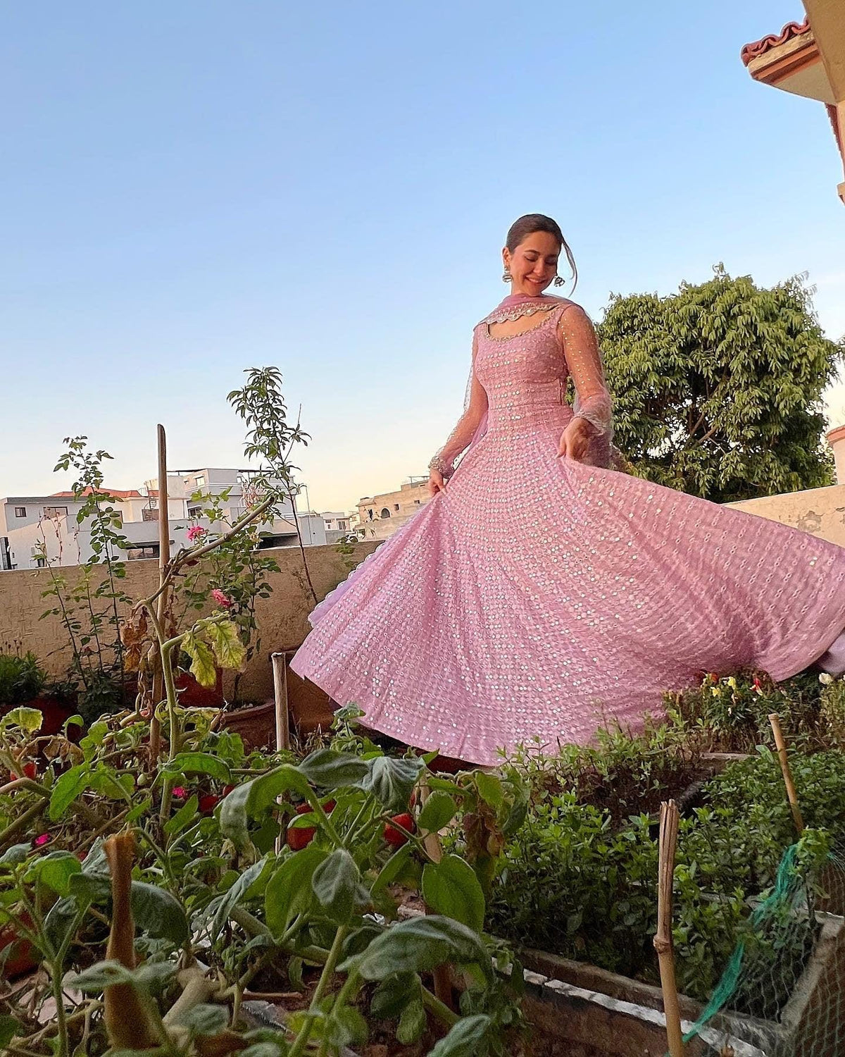 Faiza Saqlain Pink Bridal Dress | Embroidered Chiffon Maxi | Pakistani Wedding Outfit - S US letter