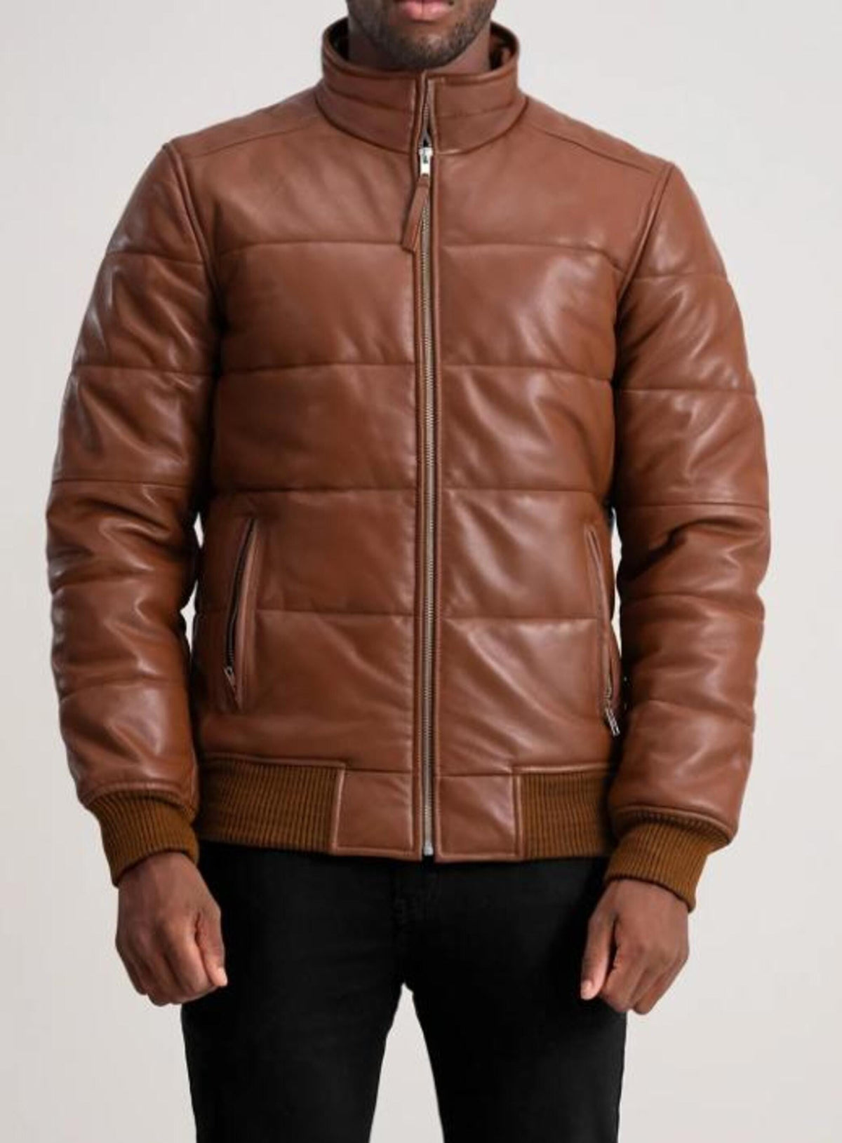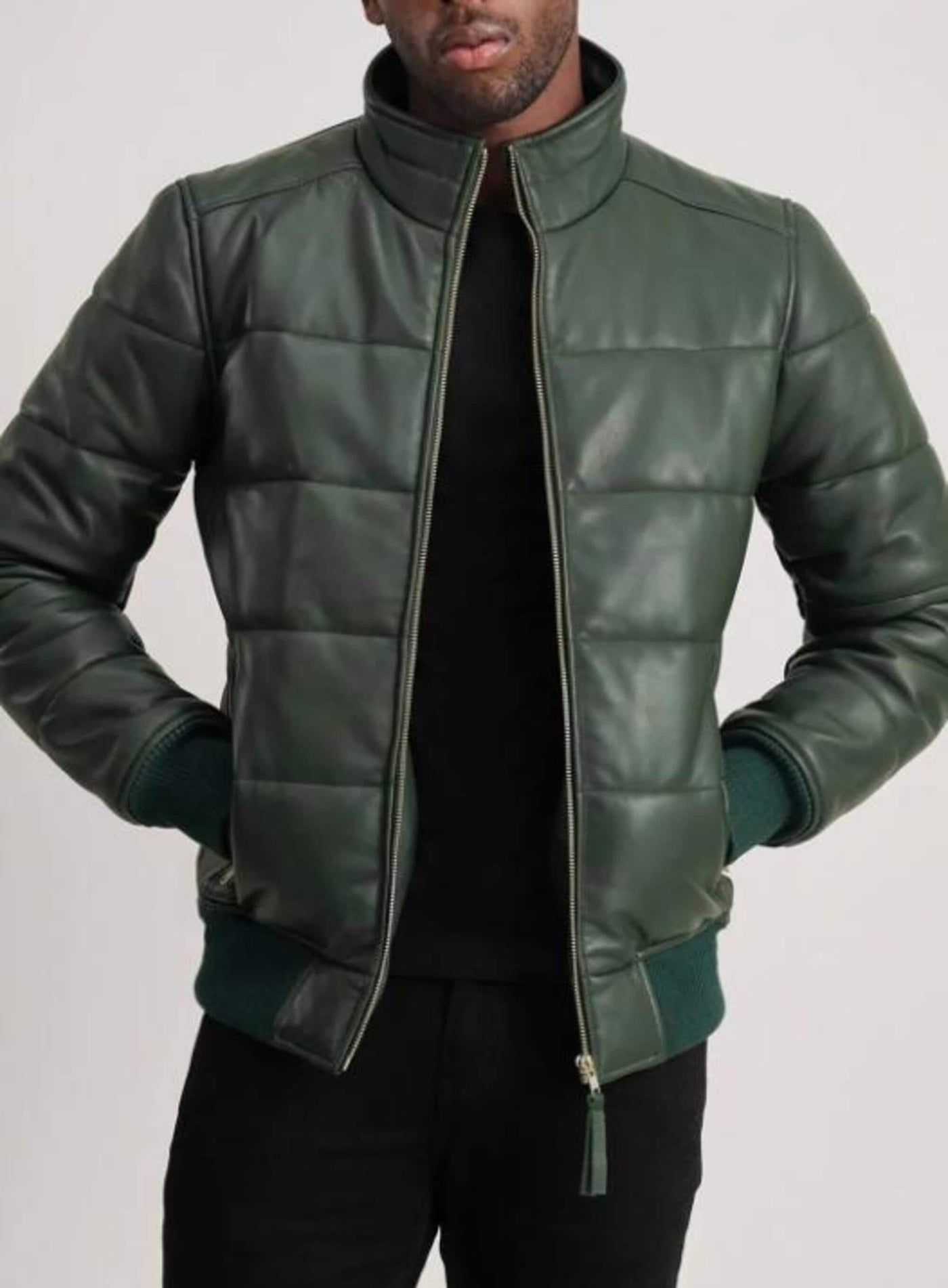 Men's Handmade Puffer Leather Biker Jacket - Erdem Stylish Sheepskin Puffer Jacket for All Seasons, Windproof and Waterproof