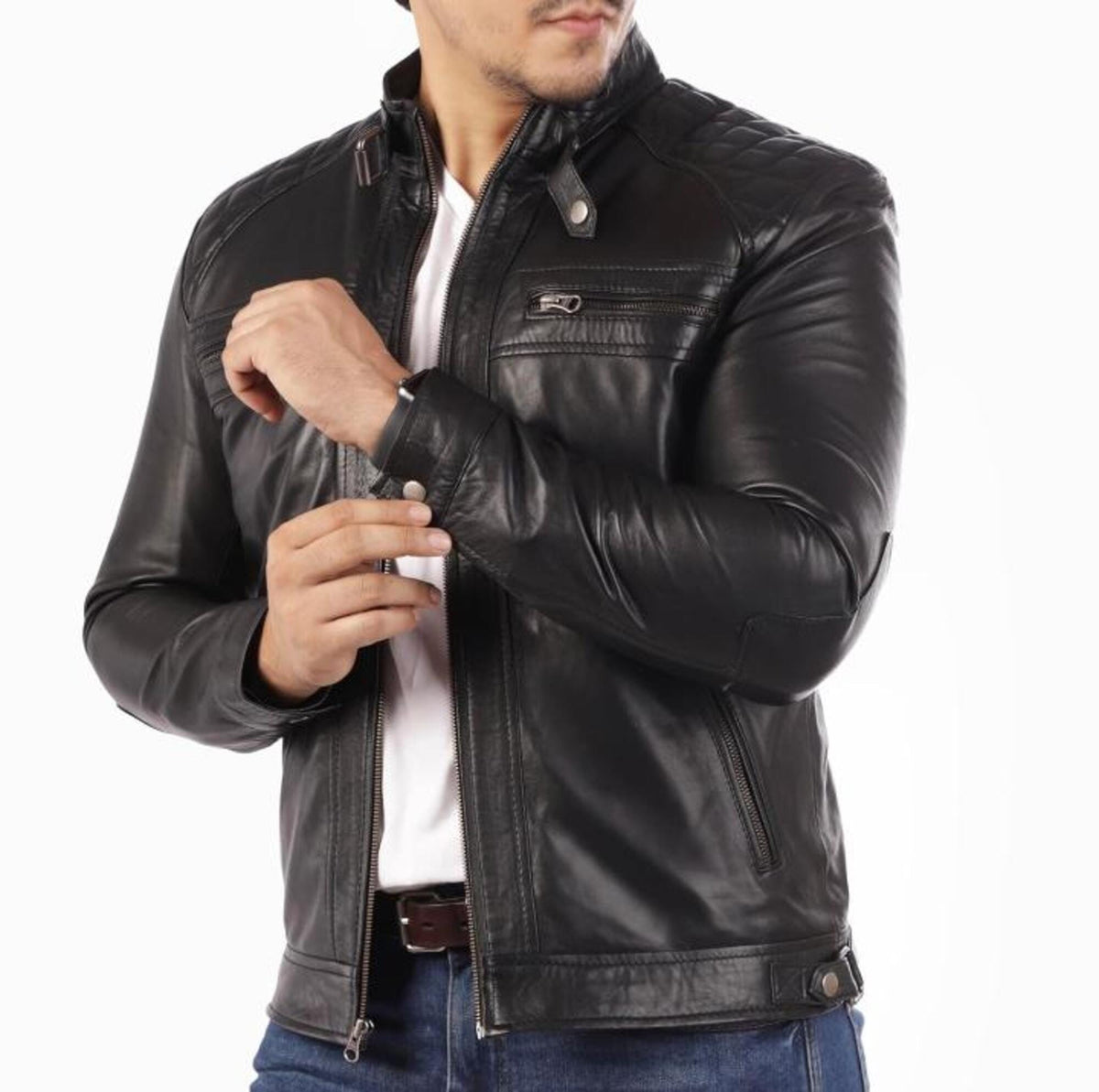 Men’s Classic Handmade Genuine Leather Bomber Jacket - Erdem Vintage Style Outerwear with Pockets - 2XS / Black