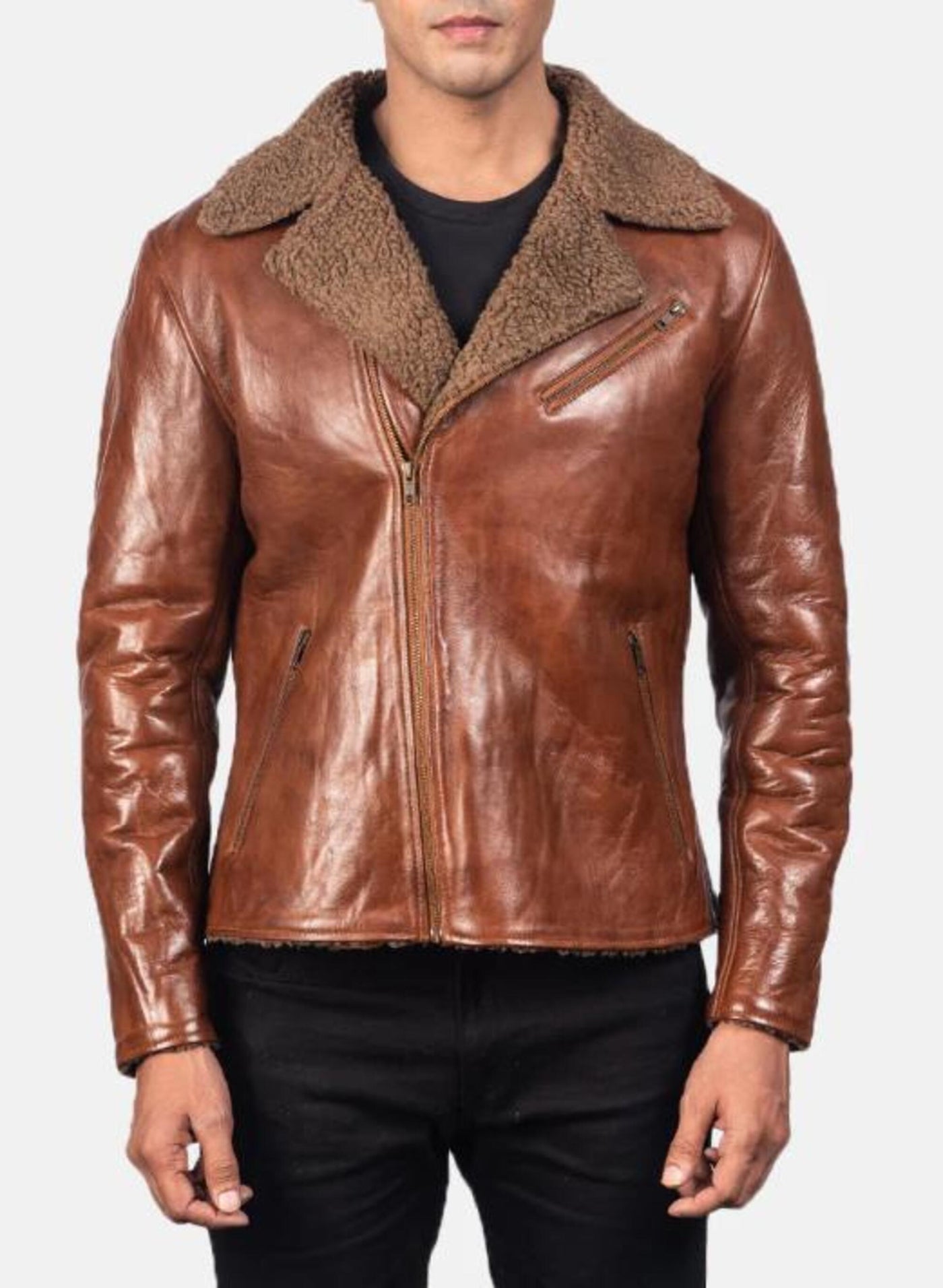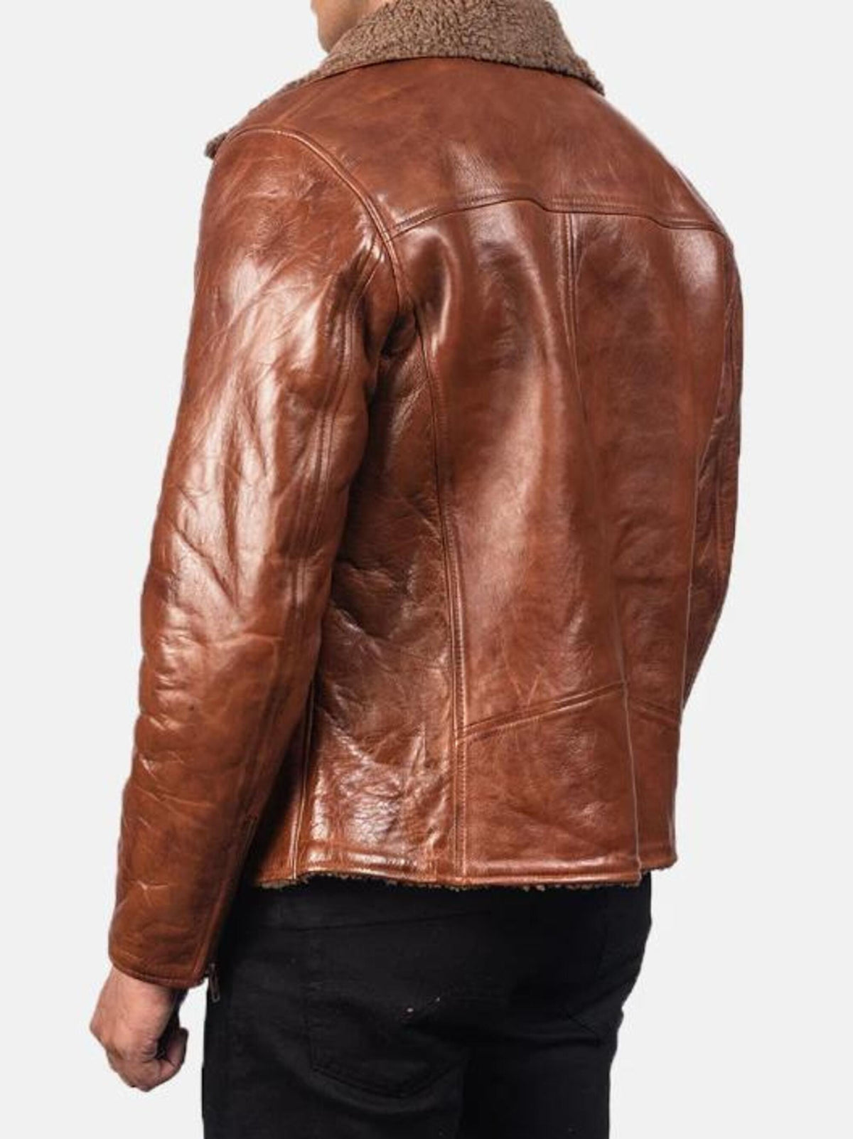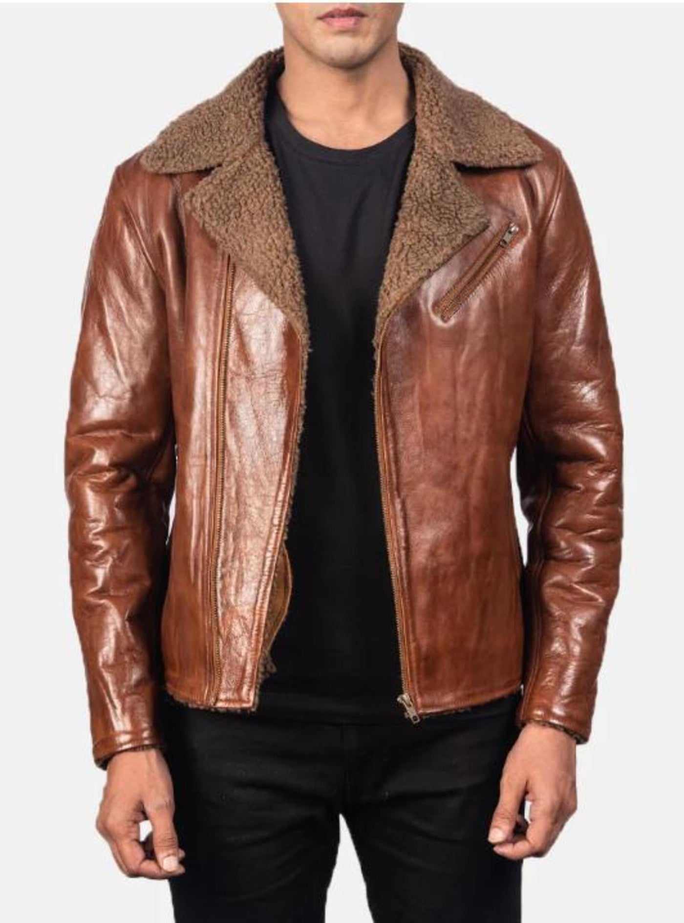 Men's Real Leather Bomber Jacket with Faux Fur Collar – Erdem Winter Stylish Warm Outerwear - 2XS / Black